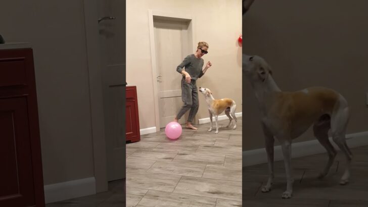おもしろワンちゃん動画Tanya and her pet bring a pink balloon to funny dog and cat